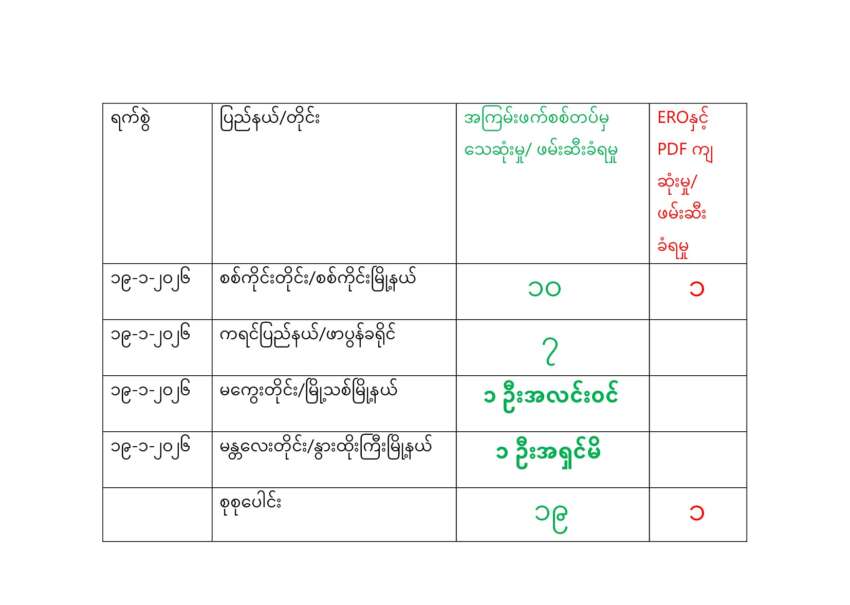 ရန်ကုန်၊ ဇန်နဝါရီ ၁၉ မြန်မာနိုင်ငံတစ်ဝန်း ဇန်နဝါရီလ ၁၉ ရက်နေ့ ရရှိထားသော အချက်အလက်များအရ စစ်ကောင်စီ တပ်ဖွဲ့ဝင် ၁၇ ဦး သေဆုံးကြောင်း ပြည်သူ့ကာကွယ်ရေးတပ်ဖွဲ့များ၏ ထုတ်ပြန်ချက်နှင့်ပြောဆို ချက်များအရ သိရှိရသည်။ ရန်ကုန်ခေတ်သစ်အနေဖြင့် နေ့စဉ် စစ်သား သေဆုံးမှု စာရင်းများကို ထုတ်ပြန် ရာတွင် ဒေသကာ ကွယ်ရေးတပ်ဖွဲ့များ၏ ထုတ်ပြန်ချက်များနှင့် ပြောဆိုချက် များကို စုစည်းဖော် ပြရခြင်းဖြစ်ပြီး မြေ ပြင် အခြေအနေတွင် အမှန်တကယ် စစ်သားများ သေဆုံးမှု ရှိ၊ မရှိ ကွင်းဆင်း အတည်ပြုနိုင်ခြင်း မရှိသည်ကို သိစေအပ်ပါသည်။ The post မြန်မာနိုင်ငံတစ်ဝန်း စစ်ကောင်စီတပ်ဖွဲ့ဝင် ၁၇ ဦးသေဆုံး appeared first on Khit Thit Media .