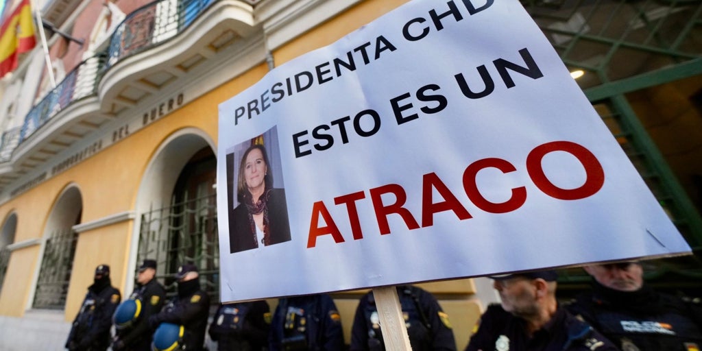 «¡Que salga la presidenta! ¿No sabe dar la cara o es que se le estropea el cutis?» , gritaban este lunes un par de manifestantes frente a la sede de la Confederación Hidrográfica del Duero (CHD), en Valladolid. Habían viajado para expresar su descontento desde la comarca del Páramo Bajo , una extensión de tierras que atañe a las provincias de León y de Zamora. La comunidad de regantes no había pedido cita previa ni dado aviso oficial de sus intenciones, pero ha movilizado a un gran grupo –unas 400 personas llegadas en siete autobuses, según han cuantificado ellos mismos– para hacer visible su queja a orillas del Pisuerga. Hasta 29 de los agricultores se han colado en las dependencias... Ver Más