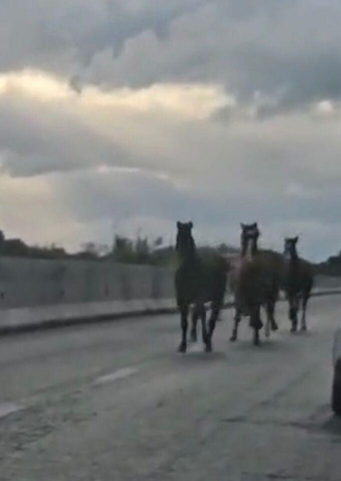 Quattro cavalli in corsa lungo la Provinciale due