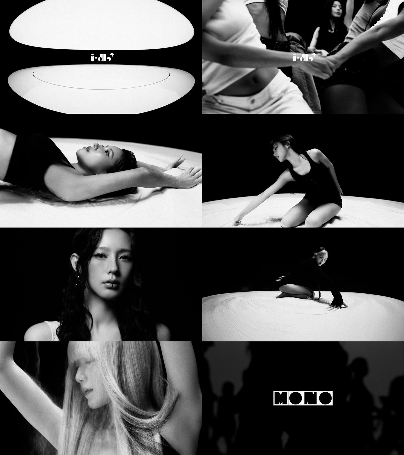 그룹 i-dle (아이들/미연, 민니, 소연, 우기, 슈화)이 새 디지털 싱글 ‘Mono (Feat. Skaiwater)’의 ‘Play the whole world in Mono’ 영상을 공개했다. 미니 8집 ‘We are’ 이후 약 8개월 만에 선보이는 국내 신보다.‘Play the whole world in Mono’ 영상은 오는 27일 발매되는 아이들의 ‘Mono (Feat. Skaiwater)’의 콘셉트를 압축적으로 담았다. 그동안 선보였던 화려한 분위기와 대비되는 모노톤의 영상을 통해 끊임없이 변화를 거듭한 아이들의 새로운 행보를 예고했다. 미니멀하면서도 감각적인 비트는 아이들의 한층 확장되고 혁신적인 음악 세계의 기대를 높였다.이번 디지털 싱글은 영국 출신으로 독특한 음색과 래핑 스타일로 주목받고 있는 래퍼 Skaiwater가 참여했다. 음악과 함께 돋보이는 패션과 비주얼로 화제가 된 Skaiwater와 아이들의 만남이 어떤 시너지를 낳을 것인지 기대를 모은다.아이들