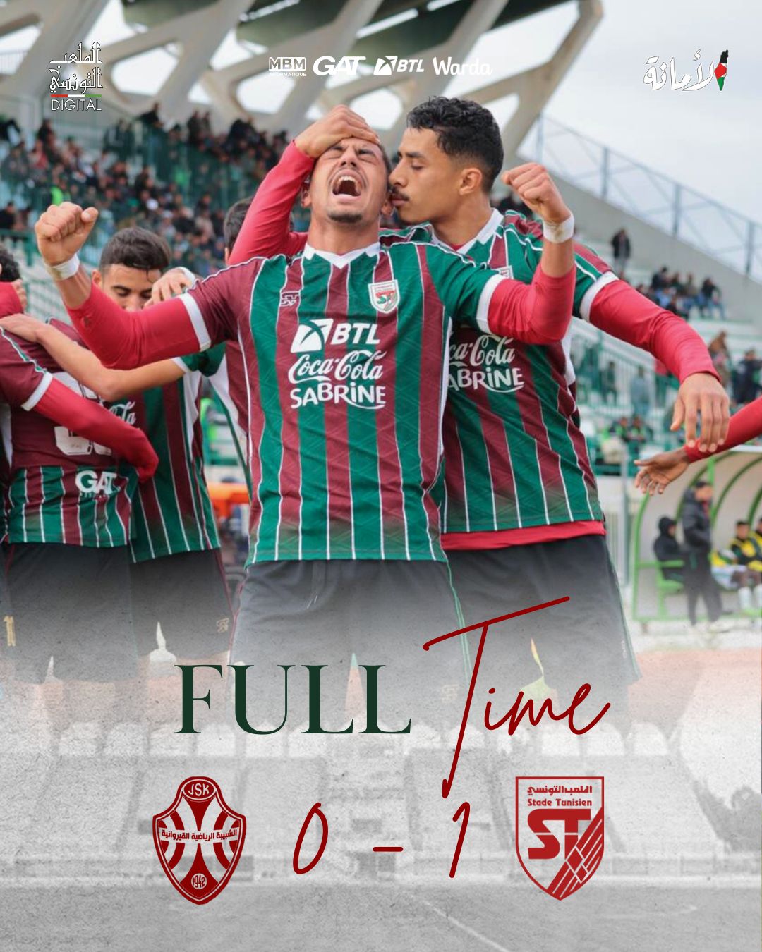 فاز الملعب التونسي، مساء اليوم الثلاثاء، على شبيبة القيروان بنتيجة 1–0، في المباراة التي احتضنها ملعب حمدة العواني بالقيروان، ضمن الدفعة الثانية من منافسات الجولة السابعة عشرة لبطولة الرابطة المحترفة الأولى لكرة القدم. وسجّل هدف اللقاء الوحيد اللاعب رفاء الرياحي في الدقيقة 26، مانحًا فريق باردو ف