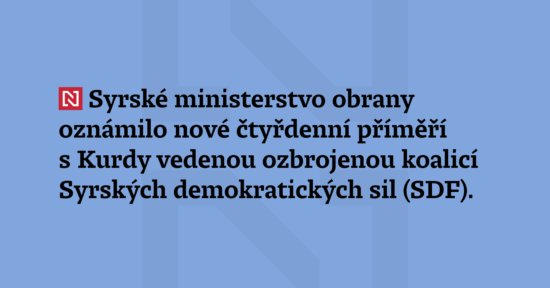 Syrské ministerstvo obrany oznámilo nové čtyřdenní příměří s Kurdy vedenou ozbrojenou koalicí Syrských demokratických sil (SDF). (Al-Džazíra)