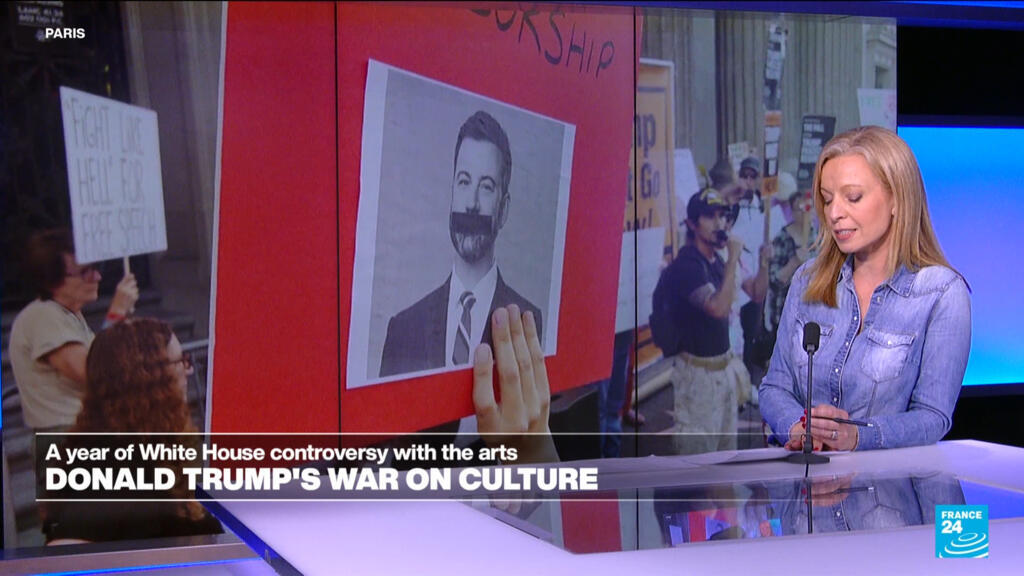 One year after Donald Trump's return to power, Eve Jackson revisits the paradoxical and conflictual relationship between the US president and culture and the arts. Controversial appointments in Hollywood, attacks on diversity policies, symbolic takeover of the Kennedy Center: the US president intends to regain control of the American cultural narrative. Faced with this pressure, artists and institutions are organizing themselves, taking public stands and mobilizing for freedom of speech.