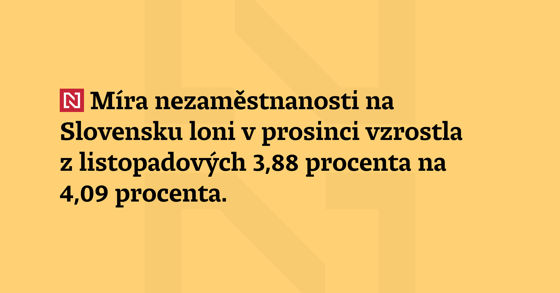 Míra nezaměstnanosti na Slovensku loni v prosinci vzrostla z listopadových 3,88 procenta na 4,09 procenta. (ČTK)