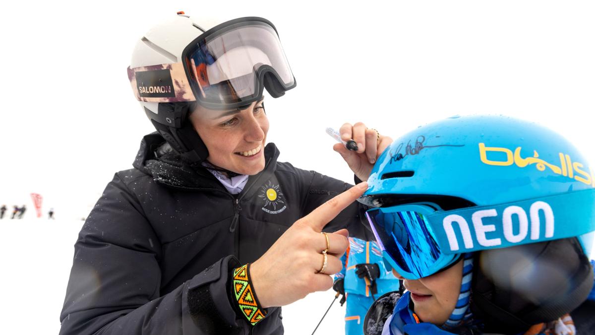 Marta Bassino, ambasciatrice di Fondazione Laureus Italia, insegna la sicurezza sugli sci ai bimbi