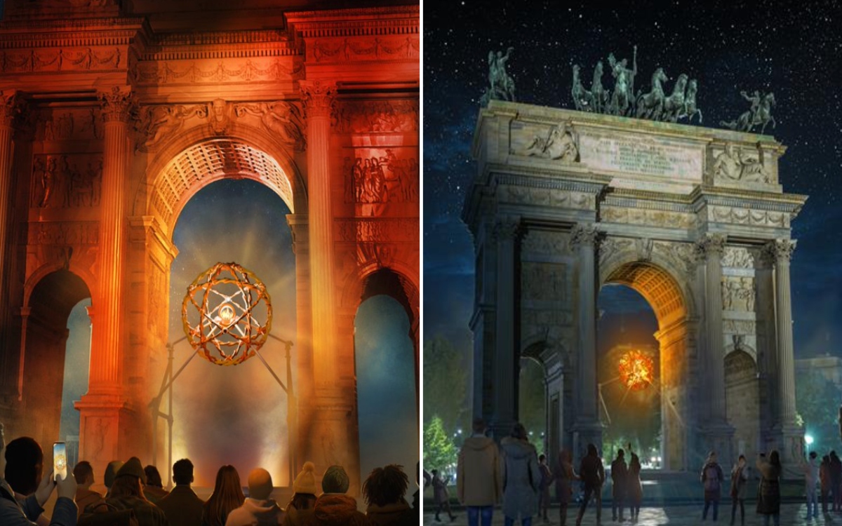 Los calderos de la justa invernal transalpina están ubicados, uno en Milán, debajo del Arco della Pace, el otro en Cortina d'Ampezzo, en Piazza Angelo Dibona; están basado en los nudos de Leonardo Da Vinci y simbolizan la armonía entre naturaleza e ingenio humano.
