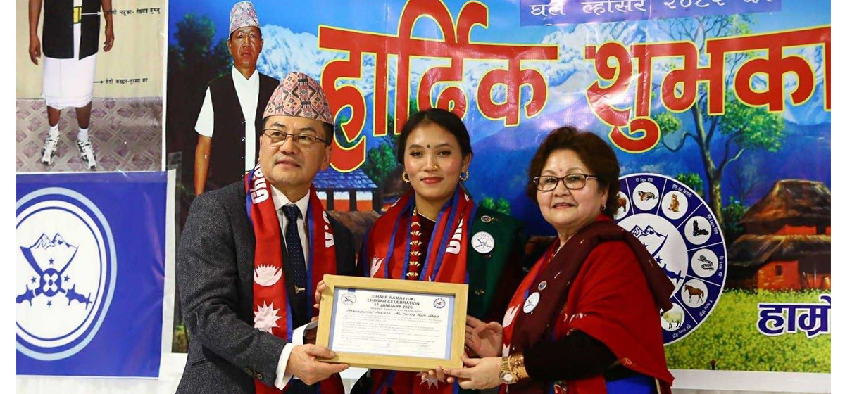 अन्तर्राष्ट्रिय पदक विजेता उमा कुङ्फु खेलाडी सरिना घलेलाई घले समाज युकेले नगदसहित सम्मान गरेको छ।