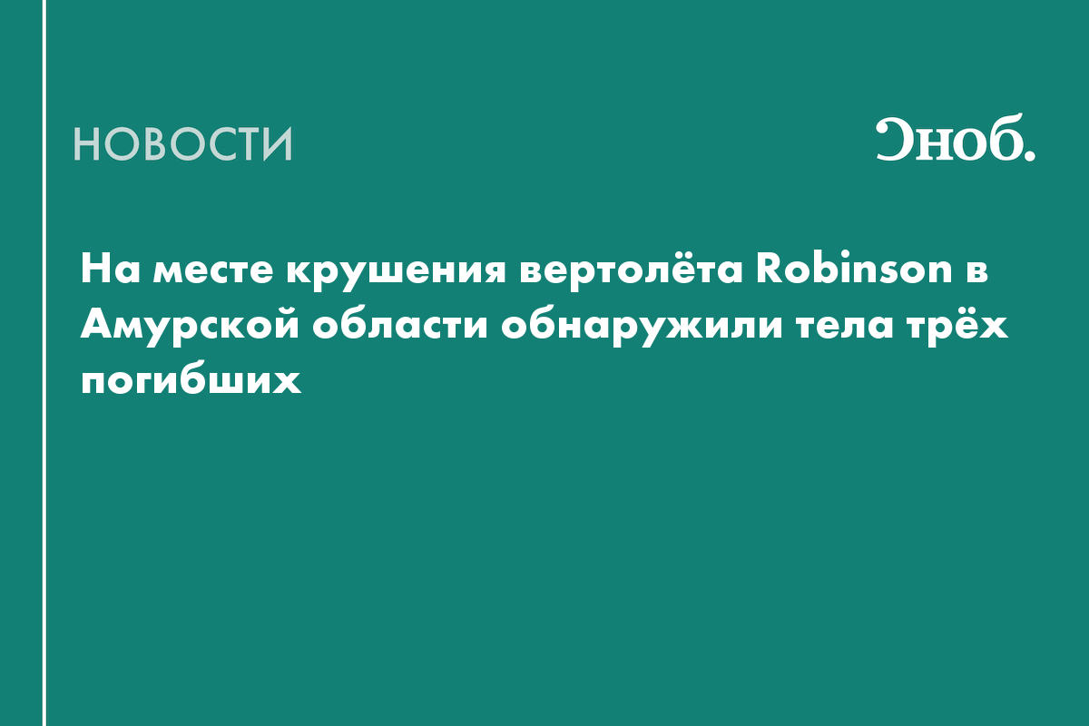 На месте крушения вертолёта Robinson в Амурской области обнаружили тела трёх погибших