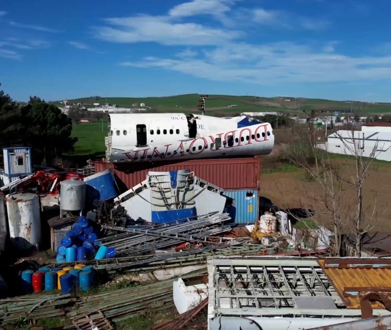 Bursa’daki bir geri dönüşüm tesisinde bulunan hurda Boeing 747, görenleri hayrete düşürüyor.