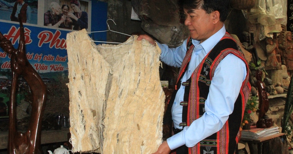 (NLĐO) - Không những trang phục cổ xưa mà nhà nghiên cứu Hồ Phương còn sưu tầm được tấm chăn làm bằng vỏ cây A-mưng lấy từ trong rừng sâu