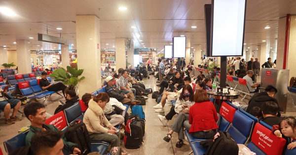 Hôm nay 21.5 tức mùng 5 tết, ga đi sân bay Tân Sơn Nhất (TP.HCM) tiếp tục chật kín hành khách. Nhiều chuyến bay delay gần 3 tiếng khiến nhiều người vật vờ chờ đợi.