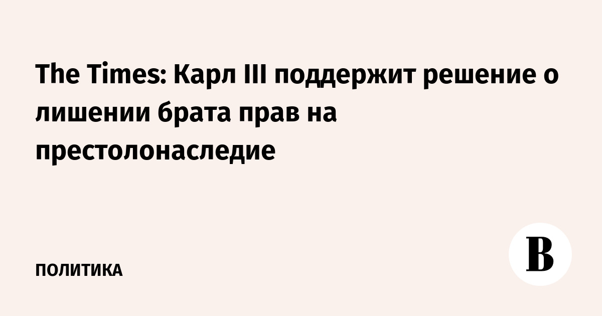 The Times: Карл III поддержит решение о лишении брата прав на престолонаследие