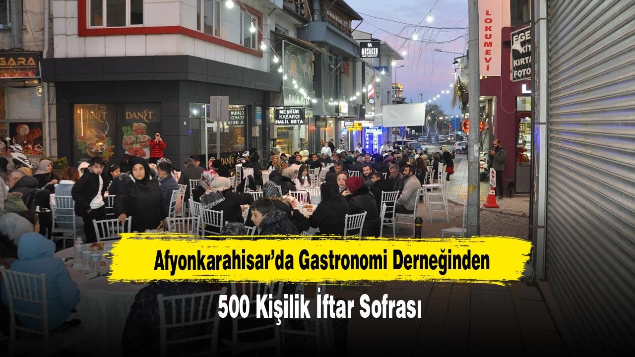 Afyonkarahisar Yöresel Mutfak Gastronomi Kültür ve Turizm Derneği tarafından düzenlenen iftar programında yaklaşık 500 kişi aynı sofrada bir araya geldi.