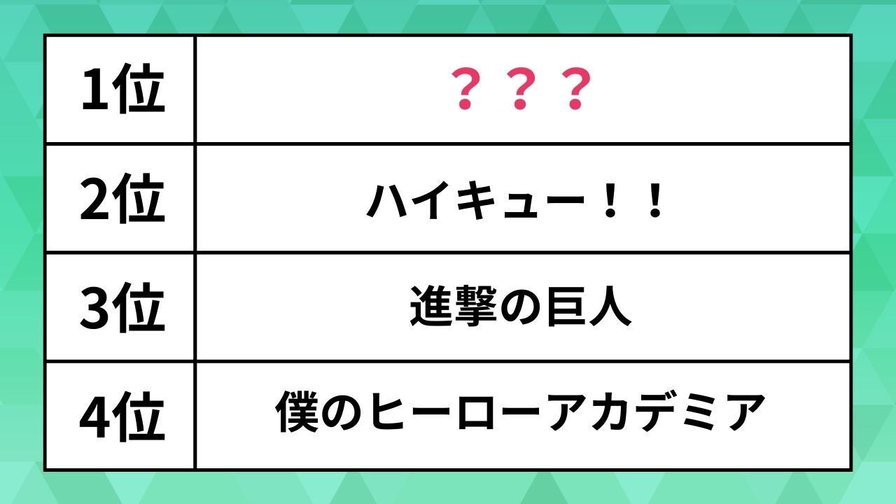 シップは2月20日、女子高校生の「感動した漫画」に関するアンケート結果を 公表しました 。 調査は1月13日から27日、同社が運営する全国ネットワーク「YOUTH TIME JAPAN project」の参加校に所属する女子高校生を対象に、インターネット上で実施。941人から回答を得ました。 「女子高校生が感動した漫画」ランキング 第10位:HUNTER×HUNTER(1.9%) 第8位:SLAM DUNK(2.0%) 同率8位:暗殺教室(2.0%) 第7位:ドラえもん(2.2%) 第6位:ONE PIECE(3.4%) 第5位:約束のネバーランド(3.9%) 第4位:僕のヒーローアカデミア(4.6%) 第3位:進撃の巨人(5.2%) 第2位:ハイキュー!!(5.4%) 第1位:鬼滅の刃(13.8%) 1位には『鬼滅の刃』がランク入りしました。 『鬼滅の刃』は、吾峠呼世晴が「週刊少年ジャンプ」で連載した人気漫画。集英社から刊行され、家族を殺された少年が鬼の妹を救うために戦う姿を描きます。 2020年に公開された劇場版『鬼滅の刃』無限列車編が、国内歴代興行収入のトップに輝くなど、社会現象を巻き起こしました。 【あわせて読みたい】 人気の「アジア旅行先」ランキング。バンコクや台北、大阪を抑えた1位は? Related... 将来性があると思う仕事ランキング。ITエンジニアや介護職、保育士を抑えた1位は? 今、泊まる人が増加中。人気上昇の「温泉地ランキング」トップ5。楽天トラベルが発表 子育て世帯の「住みやすい街」ランキング。吉祥寺や海浜幕張を抑えた1位は? ...クリックして全文を読む