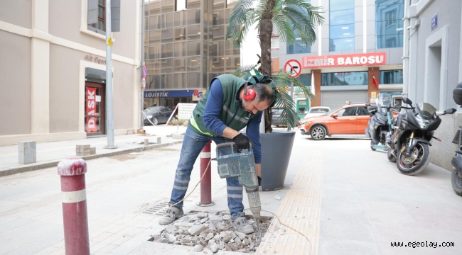 EGEOLAY/Konak Belediyesi Fen İşleri Müdürlüğü ekipleri, İZSU ve Gediz Elektrik’in altyapı çalışmalarını tamamladığı Alsancak sokaklarında, yol ve kaldırım düzenlemelerine hızla başladı. Konak Belediye Başkanı Nilüfer Çınarlı Mutlu, teknik ekibiyle birlikte sahaya çıkarak yürütülen çalışmaları yerinde inceledi.