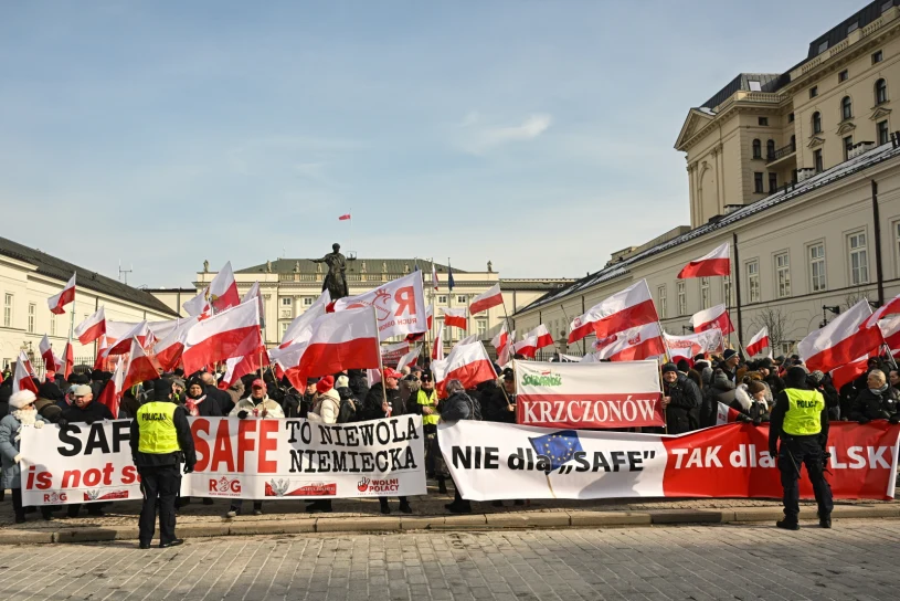 Tłum protestujących zgromadził się w sobotę przed Pałacem Prezydenckim, aby wrazić swój sprzeciw wobec programowi SAFE. Uczestnicy demonstracji oceniają, że "odbierze on Polsce suwerenność". Co więcej, domagają się, aby prezydent Karol Nawrocki zawetował ustawę przygotowaną w tej kwestii przez rząd.