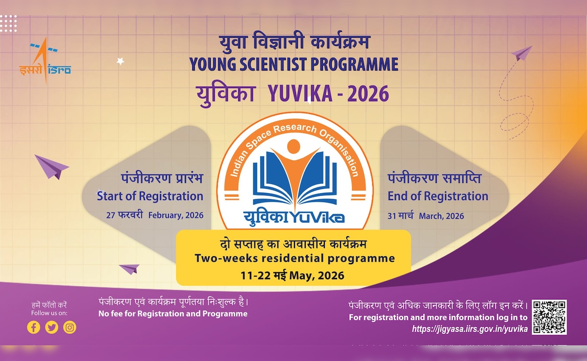 इसरो (ISRO) ने कक्षा 9 के छात्रों के लिए 'युवा विज्ञानी कार्यक्रम' (YUVIKA 2026) की घोषणा की है.