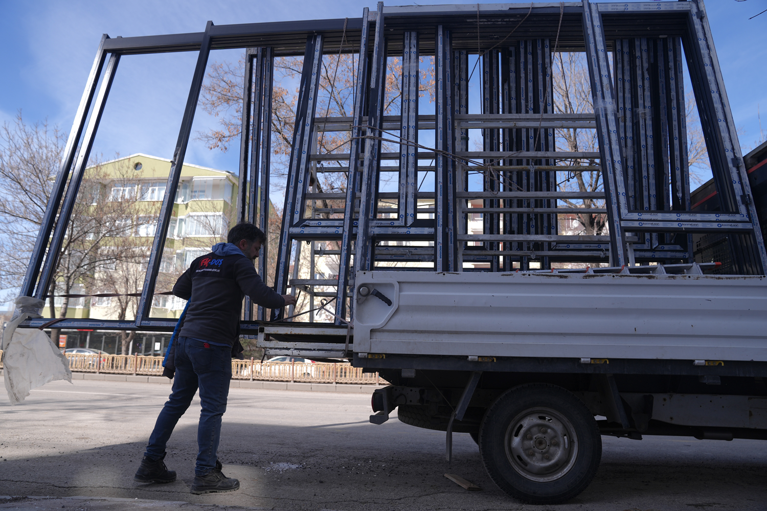 Erzurum'un Palandöken ilçesinde bir cam balkon firması, parasını alamadığı iddiasıyla inşaatta kullandığı malzemeleri söktü.