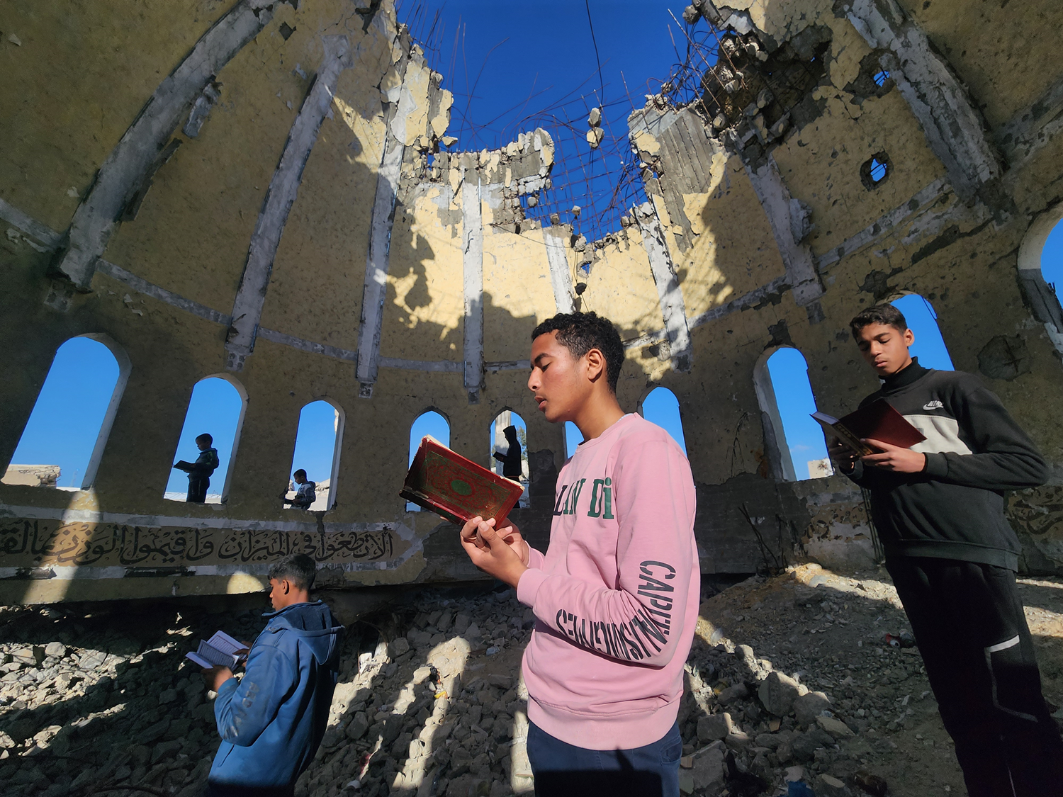 Gazze'de yıkım ve umut bir arada: Çocuklar cami enkazda Kur'an okuyor