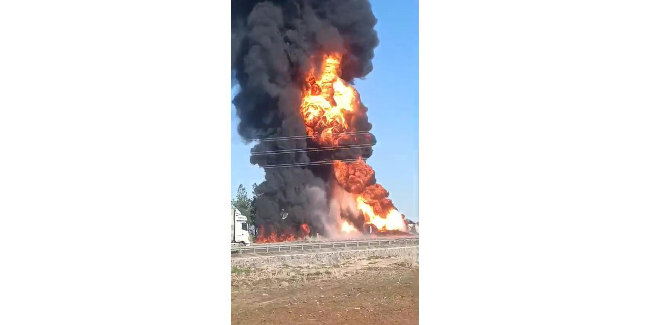Şanlıurfa'nın Viranşehir ilçesinde devrilen yakıt yüklü tırın alev topuna döndüğü kazada sürücü yaralandı.