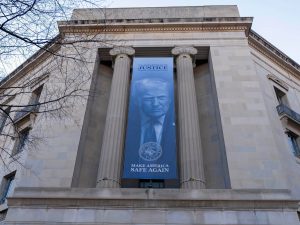 Fuori dalla sede del dipartimento di Giustizia, Donald Trump ha fatto appendere uno stendardo con il suo volto e lo slogan "Make America safe again". È l'ennesima occasione in cui il presidente degli Stati Uniti impone la sua faccia o il suo nome su un edificio pubblico - e in questo caso si parla di un dipartimento che, storicamente, dovrebbe essere almeno in parte autonomo dalla Casa bianca. Continua a leggere