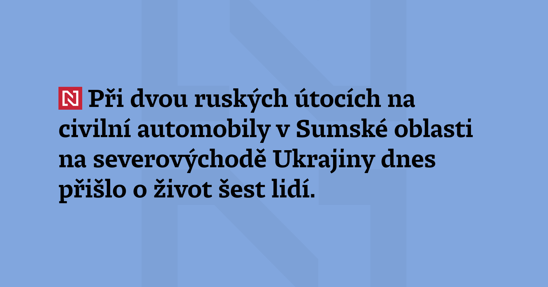 Při dvou ruských útocích na civilní automobily v Sumské oblasti na severovýchodě Ukrajiny dnes přišlo o život šest lidí. Čtyři lidé, včetně nezletilého chlapce, zemřeli v sanitce, kterou zasáhl dron. (ČTK)