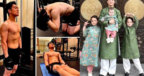 Bố đơn thân nghìn tỷ nhà bầu Hiển khoe cơ bắp cực phẩm ngày tết, diện áo dài bế con lại được khen khéo chăm