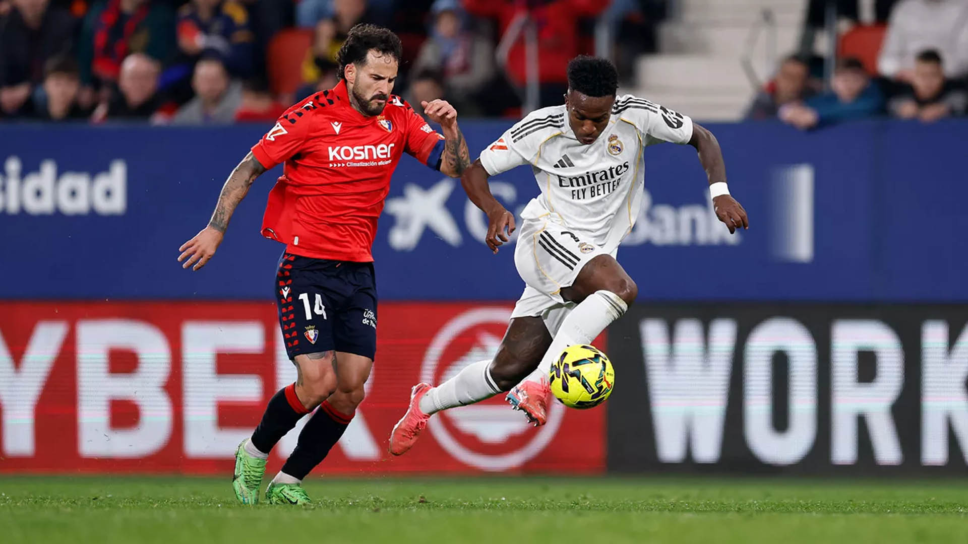 জিরোনার বিপক্ষে বার্সেলোনা হেরে যাওয়ায় লা লিগার পয়েন্ট টেবিলের শীর্ষস্থান সুসংহত করার সুবর্ণ সুযোগ এসেছিল রিয়াল মাদ্রিদের সামনে। কিন্তু ওসাসুনার মাঠে বল পায়ে দাপট দেখালেও ম্যাচ হেরে গেছে রিয়াল। শাবি আলনসোর বিদায়ের পর লস ব্লাঙ্কোদের কোচের দায়িত্ব নেয়ার পর লা লিগায় প্রথম হারের মুখ দেখলেন আলভারো আরবেলোয়া। এই হারে শীর্ষস্থান হারানোর ঝুঁকিতে পড়ে গেছে রিয়াল।শনিবার (২১ ফেব্রুয়ারি) এস্তাদিও এল সদর স্টেডিয়ামে ওসাসুনার বিপক্ষে ২-১ গোলে হেরে গেছে রিয়াল মাদ্রিদ। প্রথমার্ধে আন্তে বুদিমিরের পেনাল্টি থেকে করা গোলে এগিয়ে যায় স্বাগতিকরা। দ্বিতীয়ার্ধে ভিনিসিউস জুনিয়রের গোলে সমতায় ফেরে সফরকারীরা। কিন্তু ৯০ মিনিটে ওসাসুনার পক্ষে জয়সূচক গোলটি করেন রাউল গার্সিয়া।এই হারে লিগে রিয়ালের টানা আট ম্যাচ জয়ের ধারায় ছেদ পড়ল। এই হারের পর ২৫ ম্যাচে ৬০ পয়েন্ট নিয়ে এখনও শীর্ষস্থান ধরে রেখেছে রিয়াল। এক ম্যাচ কম খেলা বার্সেলোনা মাত্র ২ পয়েন্টে পিছিয়ে। আজ (২২ ফেব্রুয়ারি) রাতে লেভান্তেকে হারাতে পারলেই শীর্ষে উঠে যাবে বার্সা।২৫ ম্যাচে ৩৩ পয়েন্ট নিয়ে ৯ নম্বরে উঠে গেছে ওসাসুনা। আরও পড়ুন: নিজের ব্যতিক্রমী বোলিং অ্যাকশন নিয়ে মুখ খুললেন পাকিস্তানি স্পিনারওসাসুনার মাঠে এদিন বলের দখলে একচ্ছত্র আধিপত্য ছিল রিয়ালের। ৮১ শতাংশ বল পজেশন নিয়ে ১৪টি শট নেয় সফরকারীরা, যার মধ্যে ৫টি লক্ষ্যে ছিল। ওসাসুনাও ১৪টি শট নিয়ে ৪টি শট লক্ষ্যে রাখে।তবে বলের দখলে আধিপত্য দেখালেও ওসাসুনার লো ব্লক ডিফেন্স ভাঙতে বেগ পেতে হয়েছে সফরকারীদের। ১৭ মিনিটে প্রথম সুযোগ পায় রিয়াল। বক্সের বাইরে থেকে ভিনিসিউসের নিচু শটটি দারুণভাবে ঠেকান হেরেরা। জবাবে বুদিমির দূরপাল্লার শট সামান্য বাইরে মারেন।২৪ মিনিটে স্বাগতিকরা গোল পাওয়ার খুব কাছাকাছি পৌঁছে গিয়েছিল। রুবেন গার্সিয়ার ক্রস কারেরাসের গায়ে লেগে দিক পরিবর্তন করলে গোললাইন থেকে অসাধারণ সেভ করেন কোর্তোয়া। আধাঘণ্টার মাথায় বুদিমিরের হেড পোস্টে লেগে ফিরে আসে। এক মিনিট পরই পাল্টা আক্রমণে দুই দফা সুযোগ পায় রিয়াল—প্রথমে এমবাপ্পের শট হেরেরা ঠেকান, এরপর কারভাহালের পাস থেকে আলাবার শট ক্যাটেনার গায়ে লেগে পোস্ট ছুঁয়ে বেরিয়ে যায়।আরও পড়ুন: বৃষ্টিতে ভেসে গেলো পাকিস্তান-নিউজিল্যান্ড ম্যাচতবে ৩৮ মিনিটে পেনাল্টি থেকে এগিয়ে যায় ওসাসুনা। রেফারি আলেহান্দ্রো কিন্তেরো প্রথমে সিমুলেশনের জন্য বুদিমিরকে হলুদ কার্ড দেখালেও ভিএআর কর্মকর্তা ফিগুয়েরোয়া ভাসকেজের হস্তক্ষেপে কোর্তোয়ার বিপক্ষে পেনাল্টি দেন। যোগ করা সময়ে চুয়ামেনির ভলি অল্পের জন্য বাঁচান প্রতিপক্ষ গোলরক্ষক।দ্বিতীয়ার্ধের ১০ মিনিটে 