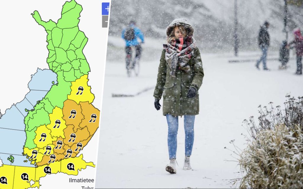 Varoituskartta rusottaa: Ajokeli paikoin erittäin huono