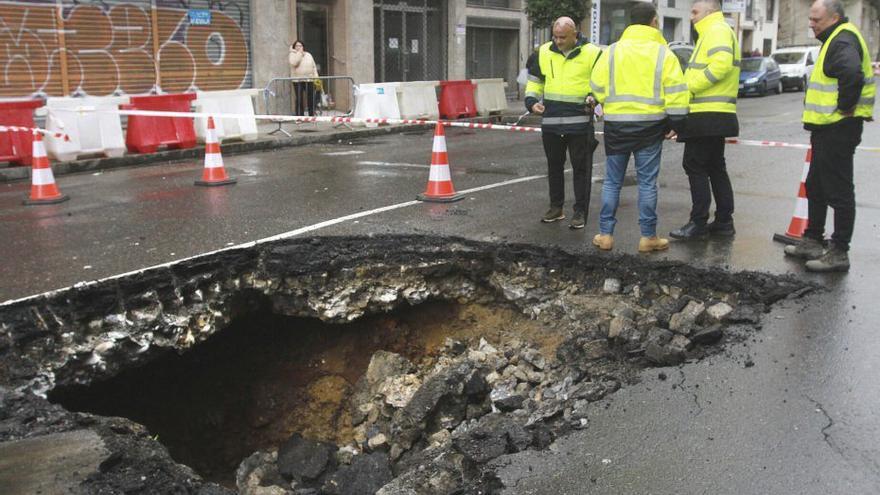 El tren de borrascas que azotó la provincia desde finales de enero y hasta esta misma semana tuvo protagonismo en la ciudad más allá de en el caudal del río Miño. Las lluvias persistentes y abundantes provocaron el pasado 27 de enero, de la mano de la borrasca Joseph, el hundimiento de parte del hormigón de la calle Pena Trevinca, dejando un socavón de grandes dimensiones y obligando a cortar el tráfico.