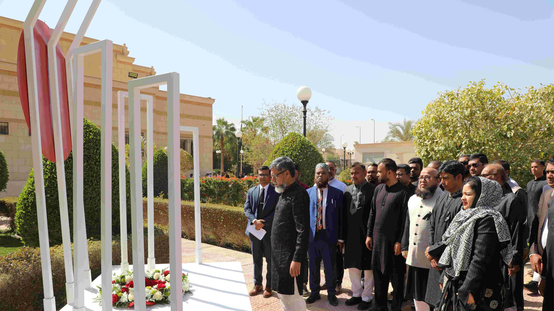 সৌদি আরবের রাজধানী রিয়াদে যথাযোগ্য মর্যাদা ও গভীর শ্রদ্ধার মধ্য দিয়ে মহান শহিদ দিবস ও আন্তর্জাতিক মাতৃভাষা দিবস পালিত হয়েছে। দিবসটি উপলক্ষে বাংলাদেশ দূতাবাস, রিয়াদ বিভিন্ন কর্মসূচির আয়োজন করে।শনিবার (২১ ফেব্রুয়ারি) সকালে দূতাবাস প্রাঙ্গণে জাতীয় পতাকা অর্ধনমিত করেন সৌদি আরবে নিযুক্ত বাংলাদেশের রাষ্ট্রদূত মো. দেলওয়ার হোসেন। পরে তিনি দূতাবাসের কর্মকর্তাদের সঙ্গে নিয়ে শহিদ মিনারে পুষ্পস্তবক অর্পণ করে ১৯৫২ সালের ভাষা আন্দোলনের শহিদদের প্রতি গভীর শ্রদ্ধা নিবেদন করেন। এ সময় রিয়াদে অবস্থানরত প্রবাসী বাংলাদেশিদের পক্ষ থেকেও শহিদ মিনারে ফুল দিয়ে ভাষা শহিদদের স্মরণ করা হয়। পুরো পরিবেশ ছিল শ্রদ্ধা, নীরবতা ও আবেগঘন অনুভূতিতে পরিপূর্ণ। দিবসটি উপলক্ষে দূতাবাসের অডিটোরিয়ামে এক আলোচনা সভার আয়োজন করা হয়। সভার শুরুতে রাষ্ট্রপতি, প্রধানমন্ত্রী, পররাষ্ট্রমন্ত্রী ও পররাষ্ট্র প্রতিমন্ত্রীর প্রদত্ত বাণী পাঠ করা হয়। এতে ভাষা আন্দোলনের তাৎপর্য, মাতৃভাষার মর্যাদা রক্ষা এবং জাতীয় চেতনা বিকাশে এর ভূমিকার ওপর গুরুত্বারোপ করা হয়। আরও পড়ুন: টরন্টোতে আন্তর্জাতিক মাতৃভাষা দিবস পালিত আলোচনা সভায় বক্তব্য দেন রিয়াদের অভিবাসী বাংলাদেশ কমিউনিটির নেতৃবৃন্দ জনাব হামিদুল হক শামীম, মো. তাজুল ইসলাম গাজী এবং ডা. এ কে এম গোলাম হাসনাইন সোহান। বক্তারা ভাষা আন্দোলনের ইতিহাস স্মরণ করে বলেন, মাতৃভাষার অধিকার রক্ষায় বাঙালি জাতির আত্মত্যাগ বিশ্ব ইতিহাসে এক অনন্য দৃষ্টান্ত। তারা প্রবাসে বেড়ে ওঠা নতুন প্রজন্মের মাঝে বাংলা ভাষা ও সংস্কৃতির চর্চা জোরদার করার আহ্বান জানান। সবশেষে রাষ্ট্রদূত তার বক্তব্যে সকল ভাষা শহিদকে গভীর শ্রদ্ধায় স্মরণ করেন। তিনি বলেন, ভাষা আন্দোলনের মধ্য দিয়েই আমাদের স্বকীয়তাবোধ ও জাতীয়তাবোধের উন্মেষ ঘটে। সেই আন্দোলনই পরবর্তীকালে স্বাধীনতার সংগ্রামে অনুপ্রেরণা জুগিয়েছে এবং বহু ত্যাগ-তিতিক্ষার ধারাবাহিকতায় বিশ্ব মানচিত্রে একটি স্বাধীন রাষ্ট্র হিসেবে বাংলাদেশের অভ্যুদয় ঘটেছে। তিনি আরও উল্লেখ করেন, ইতিহাস সাক্ষ্য দেয়—বাংলাদেশের মানুষ যখন ন্যায়সংগত দাবিতে ঐক্যবদ্ধ হয়, তখন সাফল্য অবশ্যম্ভাবী হয়ে ওঠে। আরও পড়ুন: স্মারক ডাকটিকিট অবমুক্ত করলেন প্রধানমন্ত্রী রাষ্ট্রদূত সৌদি আরবের প্রেক্ষাপট তুলে ধরে বলেন, বাংলাদেশি প্রবাসীরা সততা, দক্ষতা ও পরিশ্রমের মাধ্যমে সৌদি সমাজের আস্থা অর্জন করেছেন। তারা নিজ নিজ কর্মক্ষেত্রে দায়িত্বশীল ভূমিকা রাখার মাধ্যমে দেশের ভাবমূর্তি উজ্জ্বল করতে পারেন। ‘বাংলাদেশ’ নামটি যদি দক্ষ ও বিশ্বাসযোগ্য জনগোষ্ঠীর দেশ হিসেবে আরও সুপ্রতিষ্ঠিত হয়, তবে এর সুফল দেশের অর্থনীতি, সংস্ক