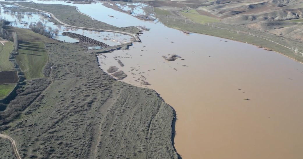 Sivas'ın Gemerek ilçesinde karların erimesi ve yağışların ardından Kızılırmak Nehri'nin taşması sonucu ekili tarım arazileri su altında kaldı.