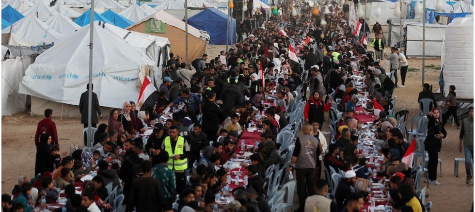 Gazze Şeridi’nin merkezinde yer alan El-Zahra kentinde, saldırılar nedeniyle evlerini terk etmek zorunda kalan siviller için toplu iftar programları organize ediliyor. Çadırların kurulu olduğu alanda bir araya gelen yüzlerce kişi, zor şartlara rağmen aynı sofrada buluşmanın manevi huzurunu yaşadı. Saldırıların gölgesinde Ramazan ayını geçiren Gazze halkı, tüm zorluklara rağmen birlik ve beraberlik mesajı veriyor.