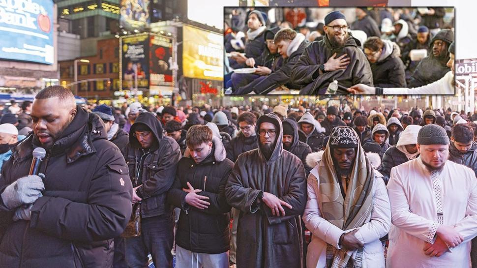 New York'ta yüzlerce Müslüman, ABD'nin kalbi olan Times Meydanı'nda toplu iftar yaptı; ardından teravih namazı kıldı.