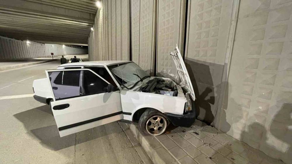 Karaman’da kontrolden çıkan otomobil alt geçidin duvarına çarptı