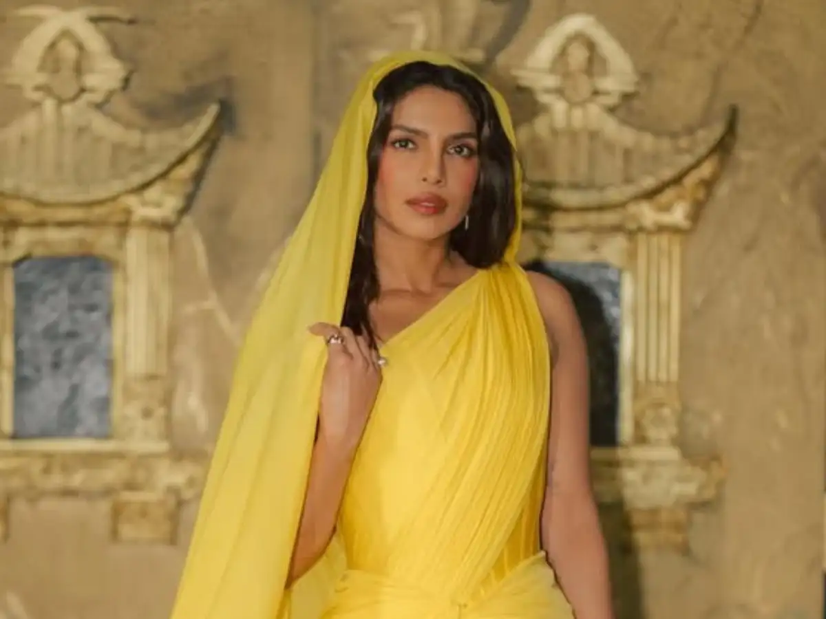 Priyanka Chopra glows in saffron Gaurav Gupta saree gown at The Bluff after-party