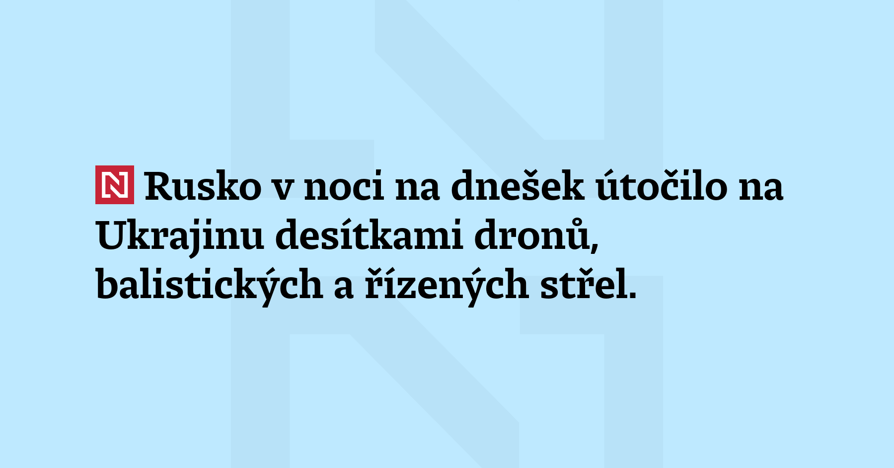Rusko v noci na dnešek útočilo na Ukrajinu desítkami dronů, balistických a řízených střel. Zaměřilo se na ukrajinskou energetickou infrastrukturu. Noční útoky zasáhly Kyjev a okolí, Oděsu a střední Ukrajinu, vyplývá z informací ukrajinské armády a místních úředníků. Nejméně jeden člověk z Kyjevské oblasti byl při ruském úderu zraněn. Škody hlásí pěti regionů – v nich bylo poškozeno přes tucet domů, oznámil šéf kyjevské […]