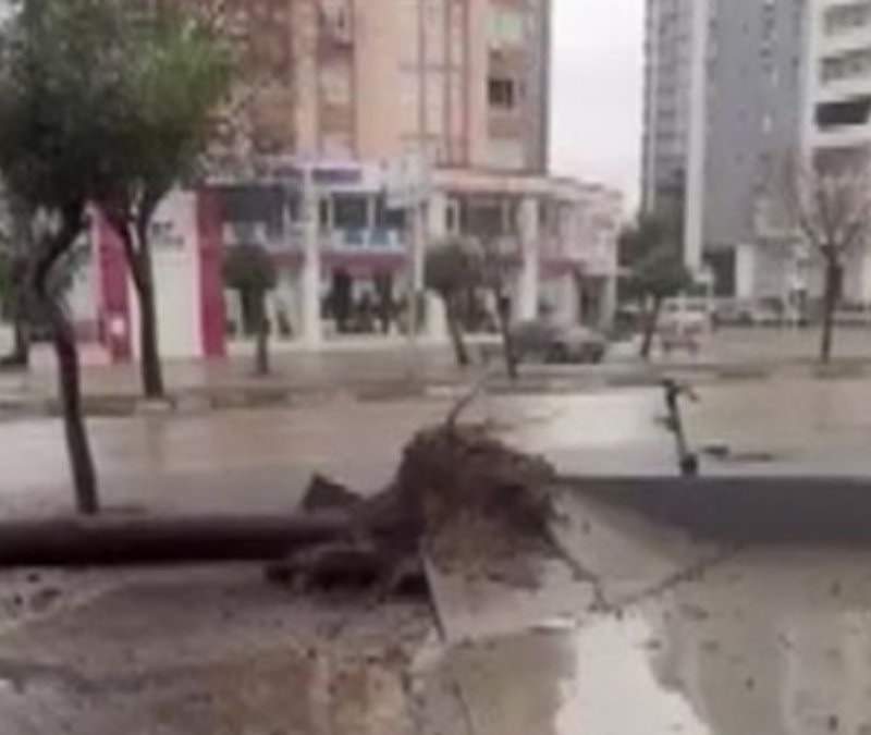 Çukurova ilçesine bağlı Huzurevleri Mahallesi 80. Yıl Bulvarı’nda, sabah saatlerinde etkili olan şiddetli yağmur ve kuvvetli rüzgar nedeniyle iki ağaç devrildi.