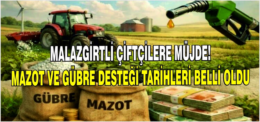 Milyonlarca üreticinin merakla beklediği 2026 yılı Mazot ve Gübre Desteği ödemeleriyle ilgili Malazgirtli çiftçilere sevindirici haber geldi.