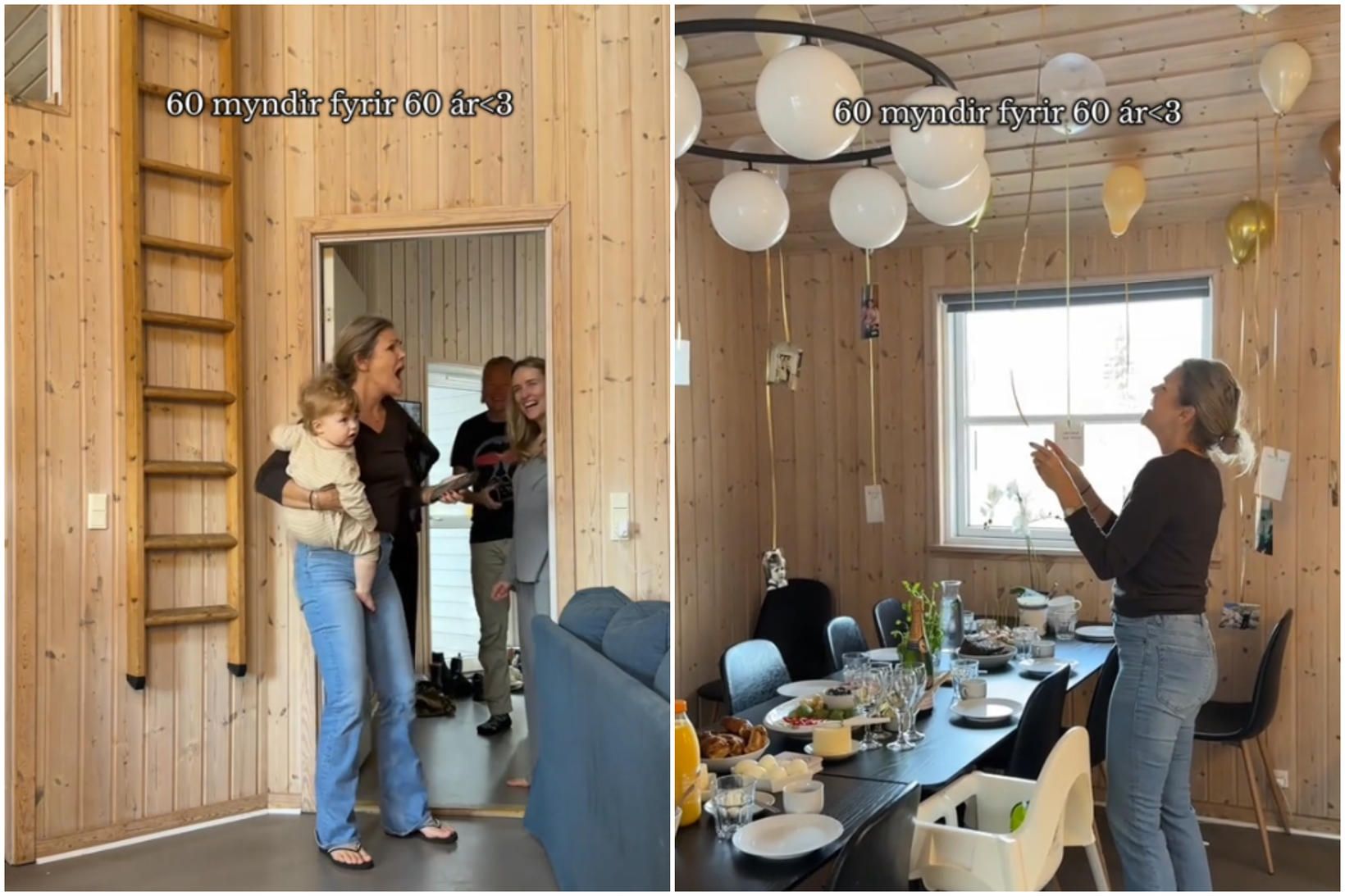Dæturnar komu móður sinni rækilega á óvart á sextugsafmælinu.