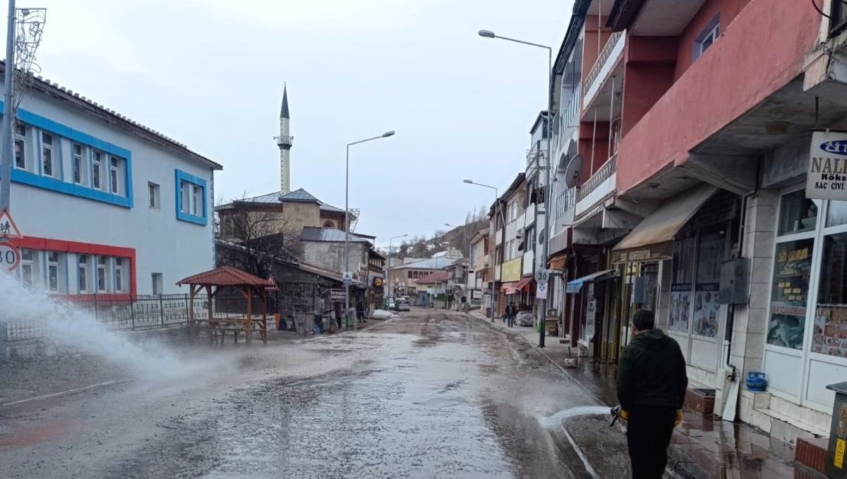 Ardahan'ın Posof ilçesinde, karın erimesiyle itfaiye ekipleri tarafından cadde ve sokaklar tazyikli suyla temizlendi.