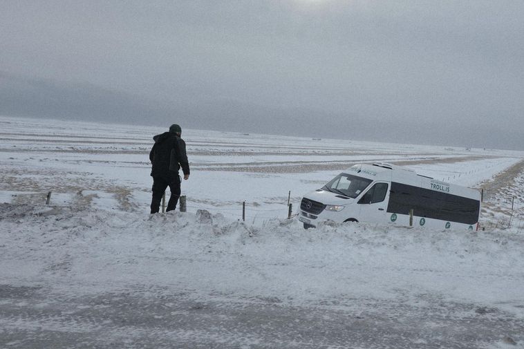Two thousand people were trapped in a landslide near Eyjafjöll mountains last night and needed the help of rescue teams as strong winds threatened to blow hundreds of vehicles off the roads in South Iceland.