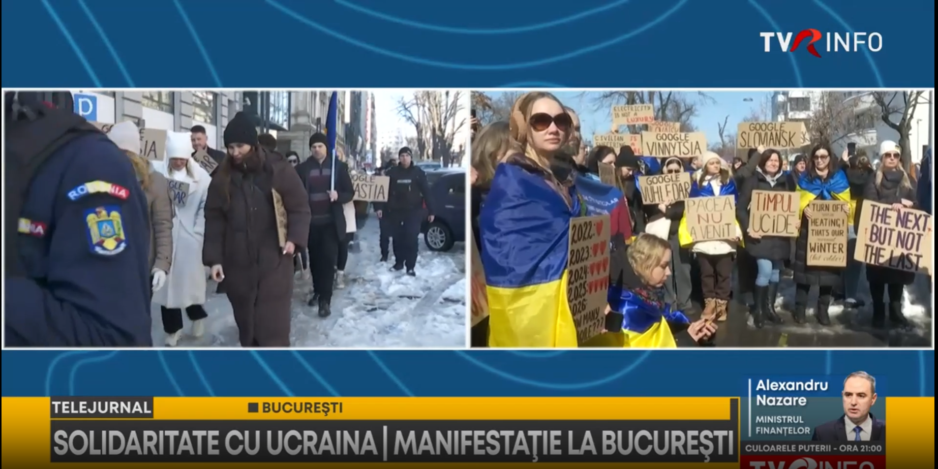 SolidaritaTE cu Ucraina! Este sloganul manifestaţiei organizate de comunitatea ucraineană și de susținătorii Ucrainei din România. Mai întâi s-au adunat în faţa ambasadei ucrainene şi apoi au mers să protesteze la ambasada Rusiei. Manifestația pașnică e dedicată comemorării a patru ani de la începutul invaziei pe scară largă și a 12 ani de agresiune rusă împotriva Ucrainei. Vlad Ungar ne dă detalii, în direct. The post Solidaritate cu Ucraina. Manifestație la București pentru comemorarea a patru ani de la invazia Rusiei appeared first on tvrinfo.ro .