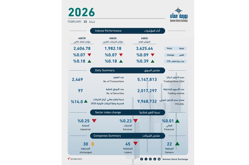 5.1 مليون دينار حجم التداول في بورصة عمان