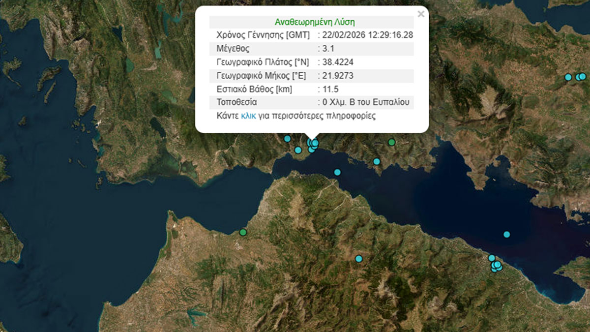 Το επίκεντρο εντοπίζεται στο Ευπάλιο Φωκίδας, ενώ το εστιακό βάθος υπολογίζεται στα 11,5 χιλιόμετρα