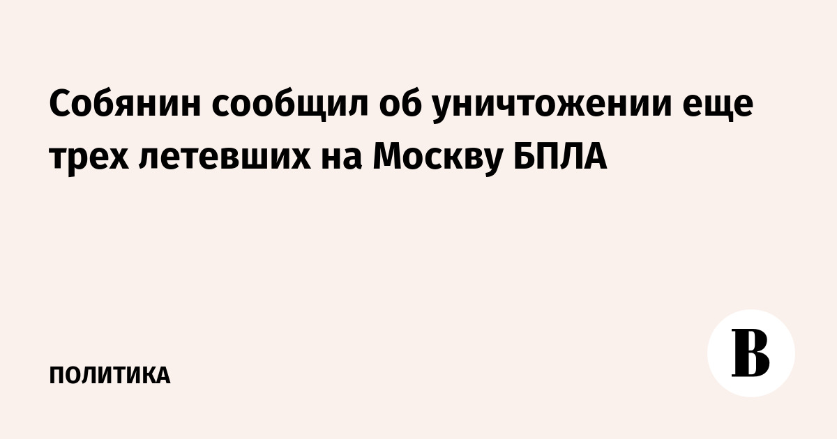 Собянин сообщил об уничтожении еще трех летевших на Москву БПЛА