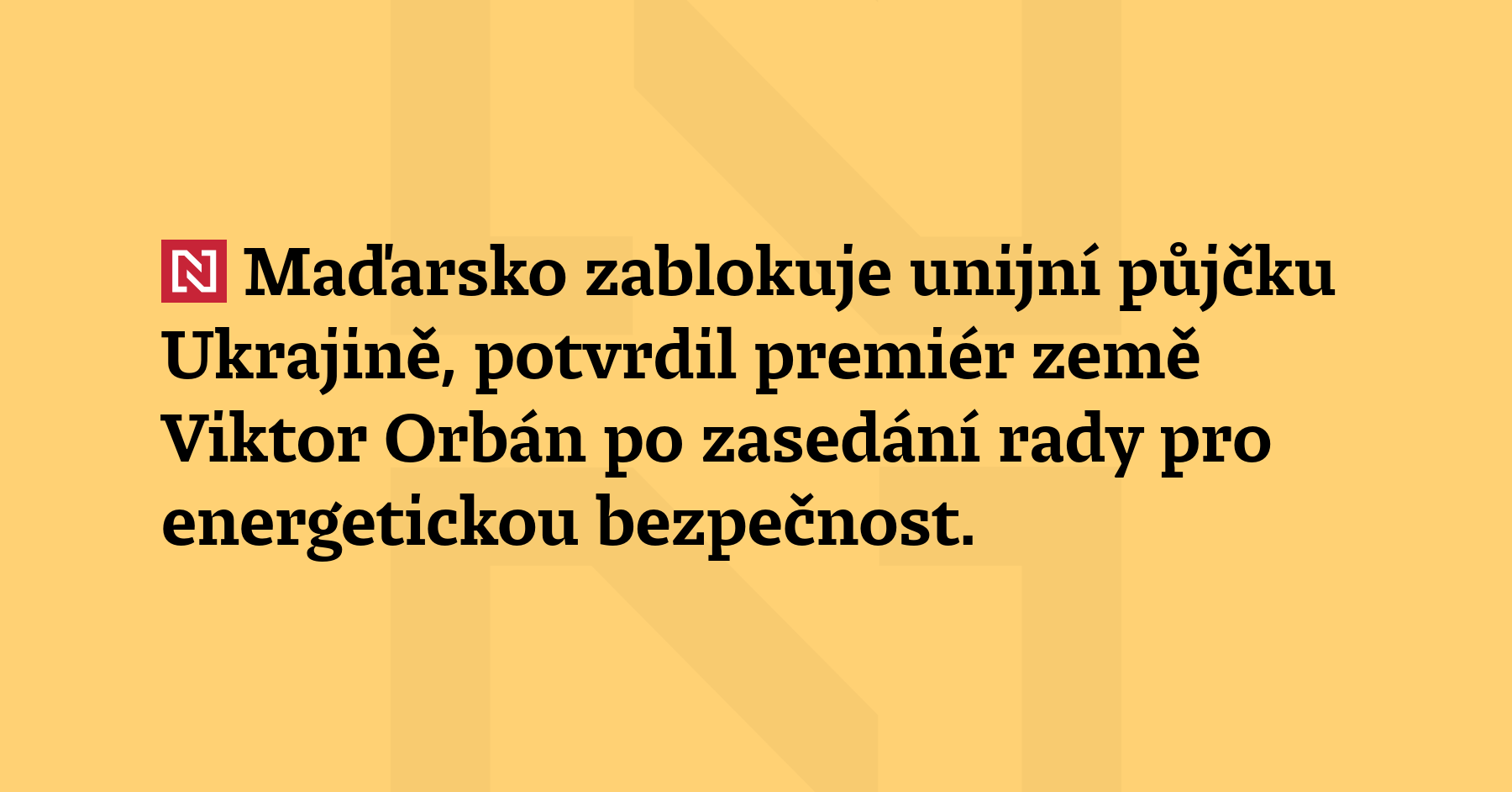 Maďarsko zablokuje unijní půjčku Ukrajině, potvrdil premiér země Viktor Orbán po zasedání rady pro energetickou bezpečnost. Blokádu uvolní, až znovu poteče ropa z Družby. (ČTK)
