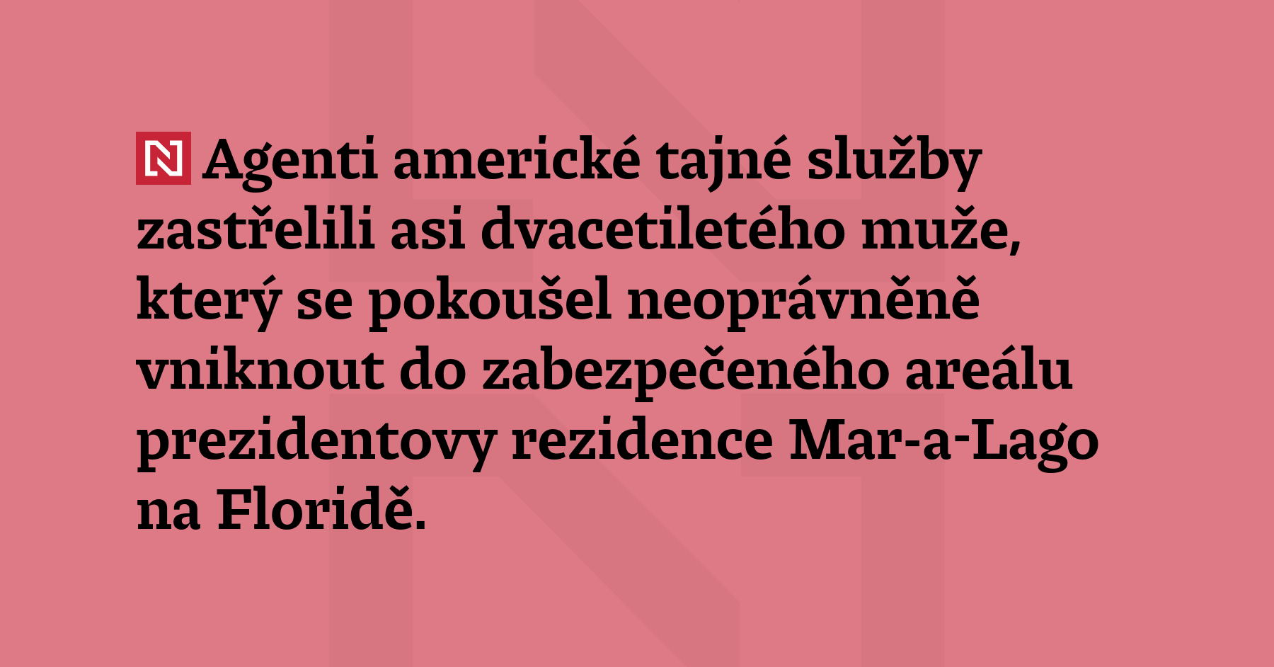 Agenti americké tajné služby zastřelili asi dvacetiletého muže, který se pokoušel neoprávněně vniknout do zabezpečeného areálu prezidentovy rezidence Mar-a-Lago na Floridě. Donald Trump se v době incidentu nacházel ve Washingtonu. (Reuters)