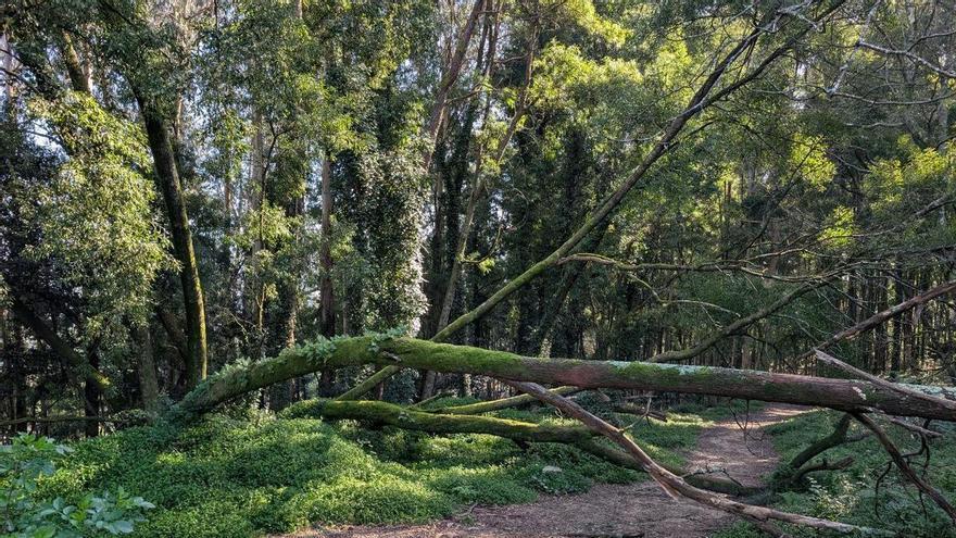 No todo está de cara para poder disfrutar del sol este domingo. Cientos de vigueses han aprovechado la segunda jornada de cielos despejados para hacer deporte y pasear por los parques de la ciudad después de casi 50 días seguidos de lluvias. Sin embargo, el paso de los temporales dejó su huella en ellos. En el caso de A Guía se han tenido que acordonar varios caminos por la caída de árboles de gran porte.