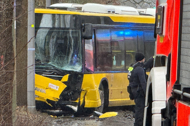 Der Linienbus rammt am Sonntagnachmittag auf der Gatower Straße erst mehrere Autos und kracht dann gegen einen Baum.